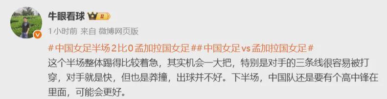 正是因为如此,媒体人们在上半场比赛结束后,就纷纷吐槽中国女足的表现。接下来,让我们一起来看看媒体人们都说了什么?