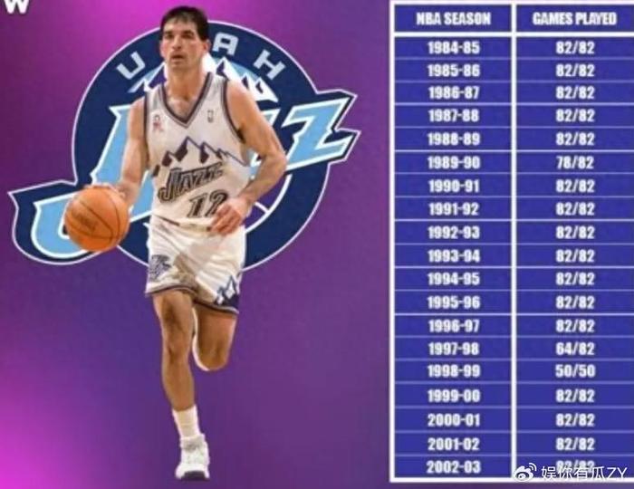 本赛季是保罗的第19个赛季,跟斯托克顿相比虽然赛季数量一样,但是保罗的出勤率和斯托克顿比起来可就差远了。